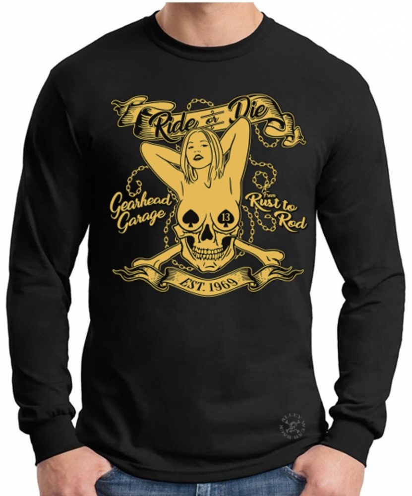 Ride or Die Gearhead Garage T-Shirt available in short or long sleeves and in over 25 different colors.
