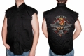 Men's Sleeveless Black Denim Shirts from Allstate Leather are made out of 100% Cotton Twill and feature 2 front buttoned chest pockets with a snap down collar.