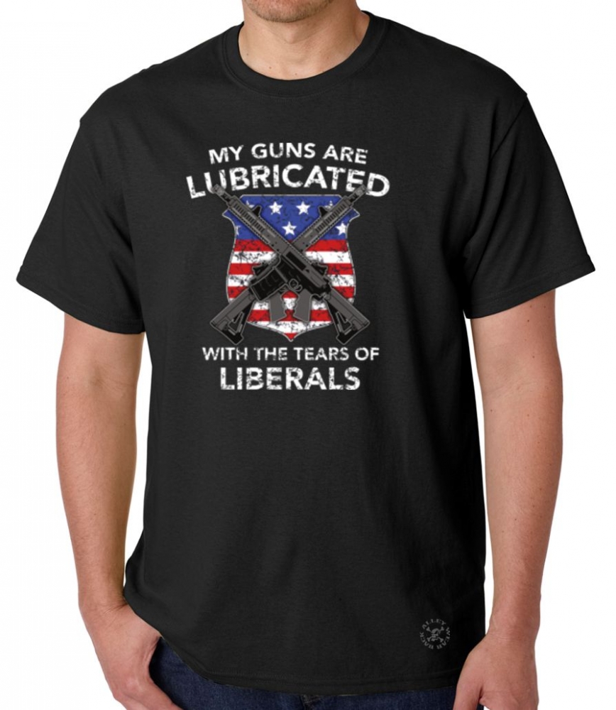 Guns Lubricated with Tears of Liberals T-Shirt available in short or long sleeves and in over 25 different colors.