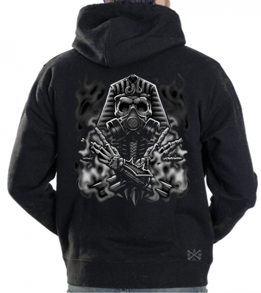 Check out this Egyptian Gasmask Hoodie Sweat Shirt available in many different colors. These are heavy weight hooded sweat shirts with the design placed as pictured.
