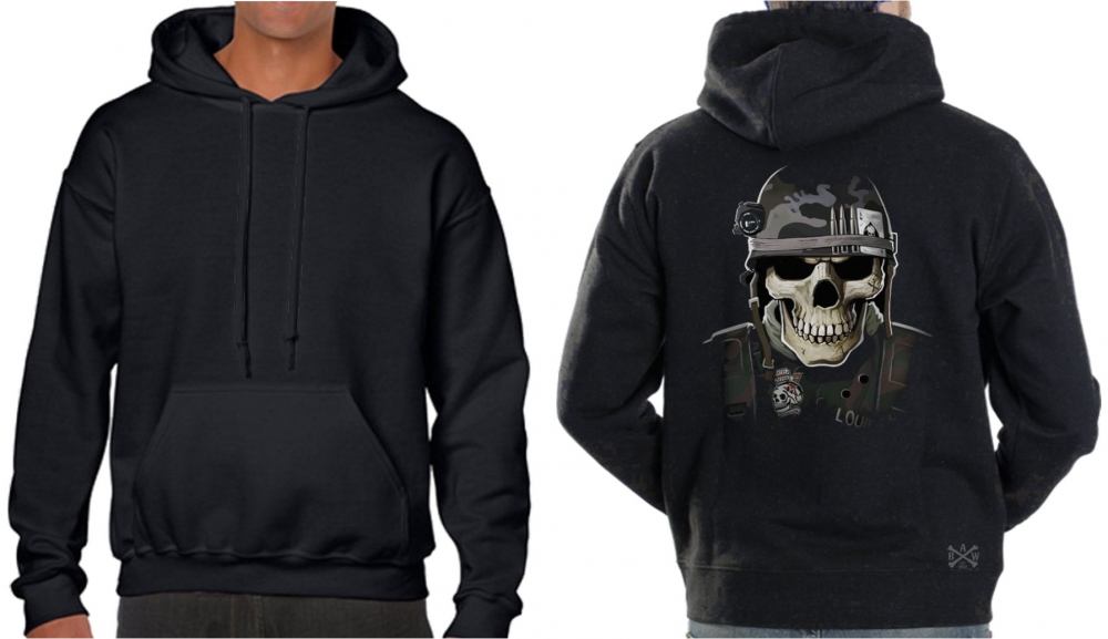 Check out this Military Skull Hoodie Sweat Shirt available in many different colors. These are heavy weight hooded sweat shirts with the design placed as pictured.